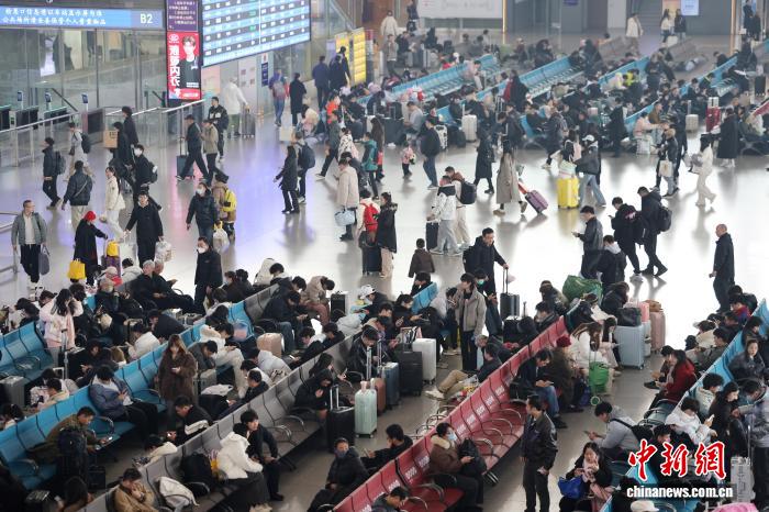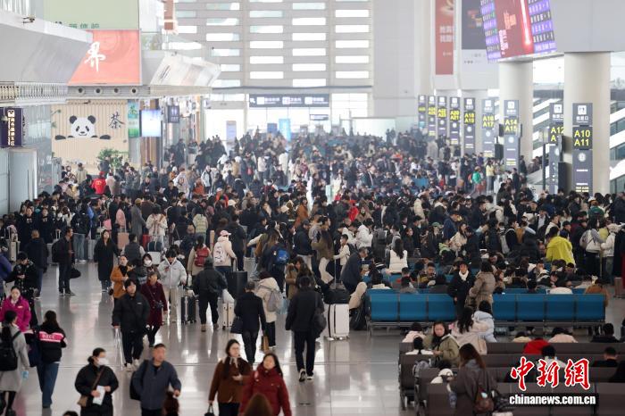 今日4川成皆水车东站最先迎去除夕假日搭客出止顶峰,候车年夜厅内乱别名搭客奔走追车。中新社记者 弛浪 摄