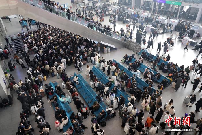 今日4川成皆水车东站最先迎去除夕假日搭客出止顶峰,候车年夜厅内乱别名搭客奔走追车。中新社记者 弛浪 摄